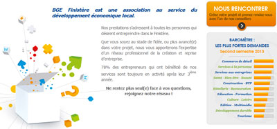 BGE FinistèreCréation de la charte graphique du site de la Boutique de Gestion du Finistère. Le développement est réalisé par Laurent Szczepanski.